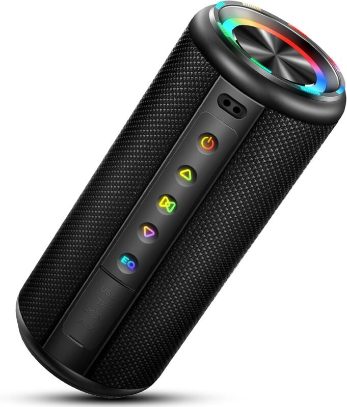 Bluetooth Speaker with LED Lights – 10H Playtime, Bluetooth 5.3, Powerful Bass, Built-in Mic | Portable Wireless for Parties, Outdoor & Home Use