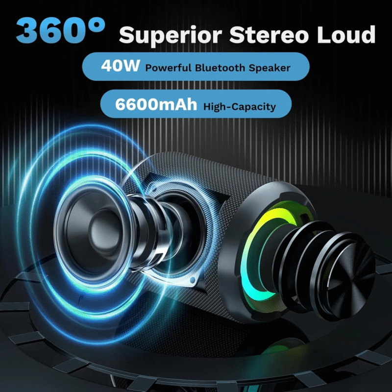 40W Bluetooth Speaker with RGB Lights, IPX7 Waterproof, TWS Pairing, AUX/TF Card | Portable Wireless Speaker for Party, Beach, Travel & Home