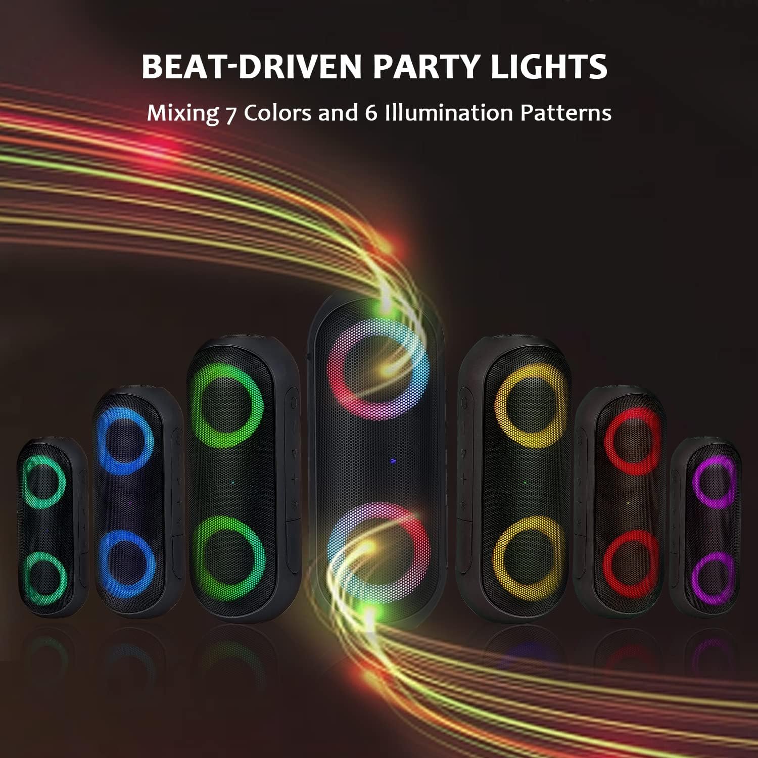 Bluetooth Speaker with RGB Lights – IPX7 Waterproof, 100ft Wireless Range, 30W, Loud Stereo Sound | Portable Shower Speaker with Rhythm Light Show for Parties